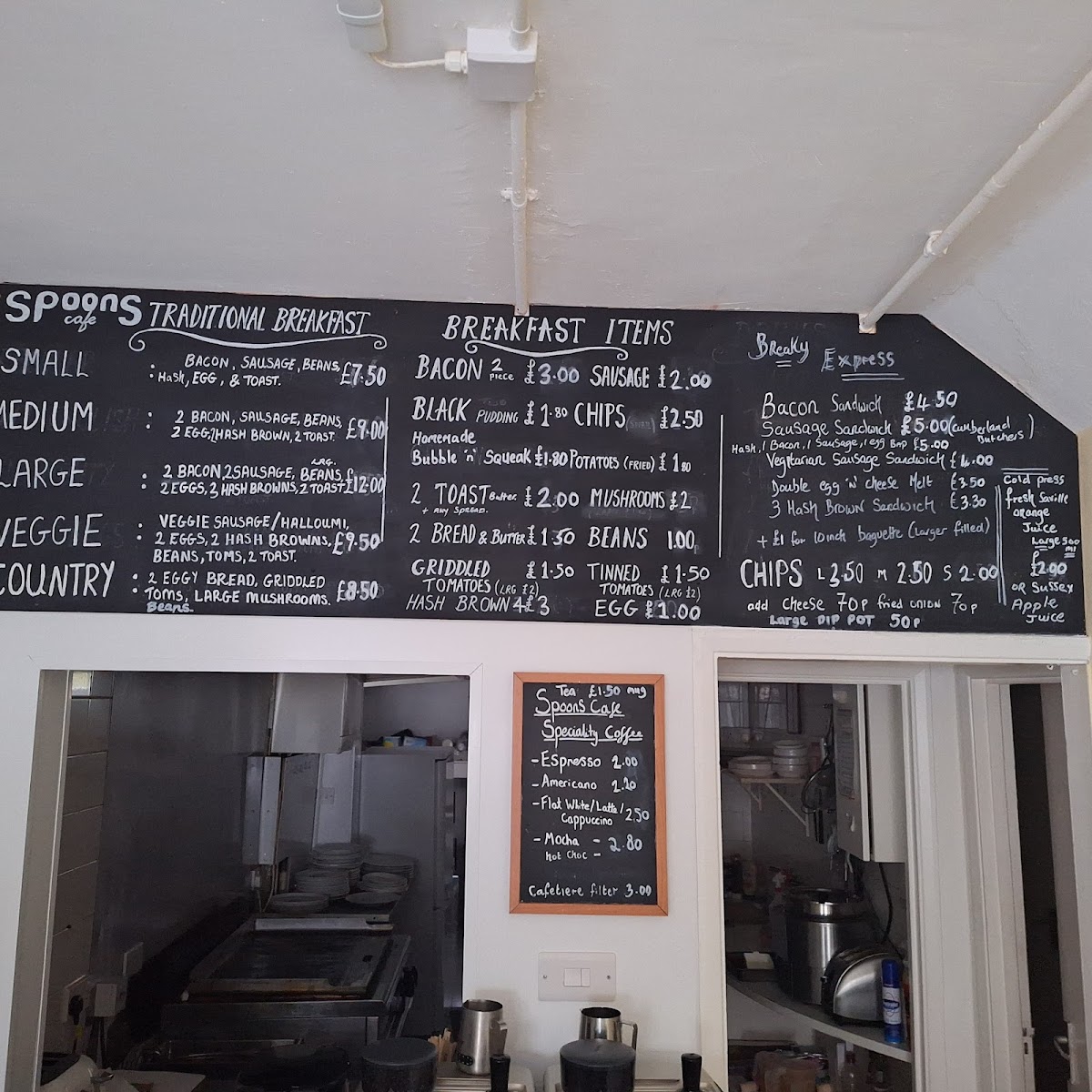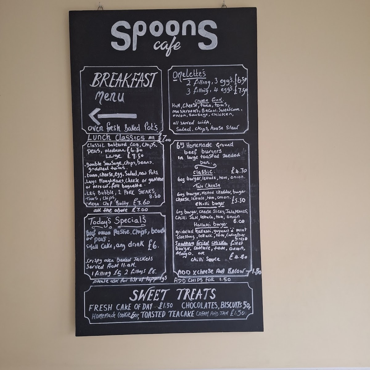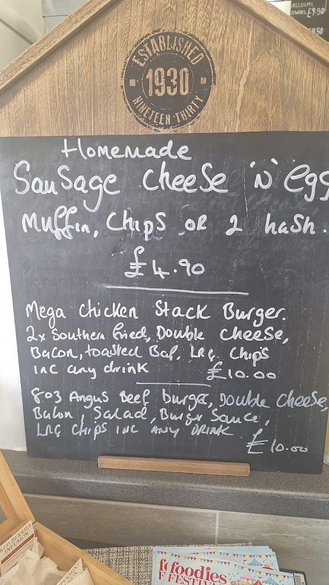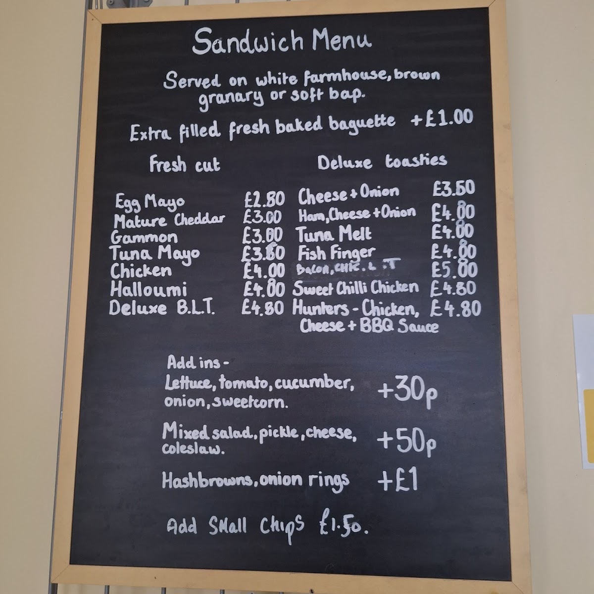 - Hot Sandwiches and Burgers: Includes options like the Big Stack Cheese and Ham Toastie, Hot Chilli Burger, Double Cheese Burger with chips, Halloumi Burger with fries, and Gammon with egg and chips.