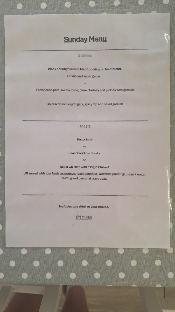- Specials and Main Courses: Features dishes such as Roast Beef, Roast Pork Loin Steaks, Roast Chicken with a pig in blanket, and a baked potato special. ‘‘It’s the Special’’ is also listed among these offerings.
